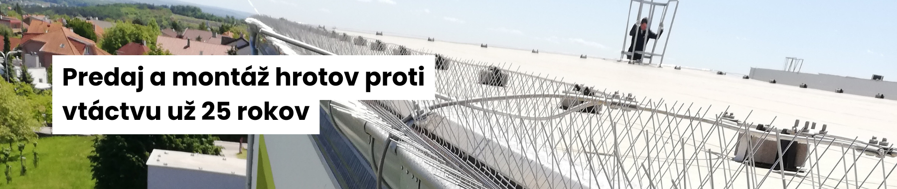 Už viac ako 20 rokov pomáhame ľuďom po celom Slovensku chrániť svoje budovy pred neželaným vtáctvom. Špecializujeme sa na predaj hrotov proti vtáctvu a ponúkame aj profesionálnu montáž bez účtovania dopravy. Naše produkty sú vyrábane v Španielsku a Francúzsku - nejedná sa o žiadny čínsky alebo podobný produkt.